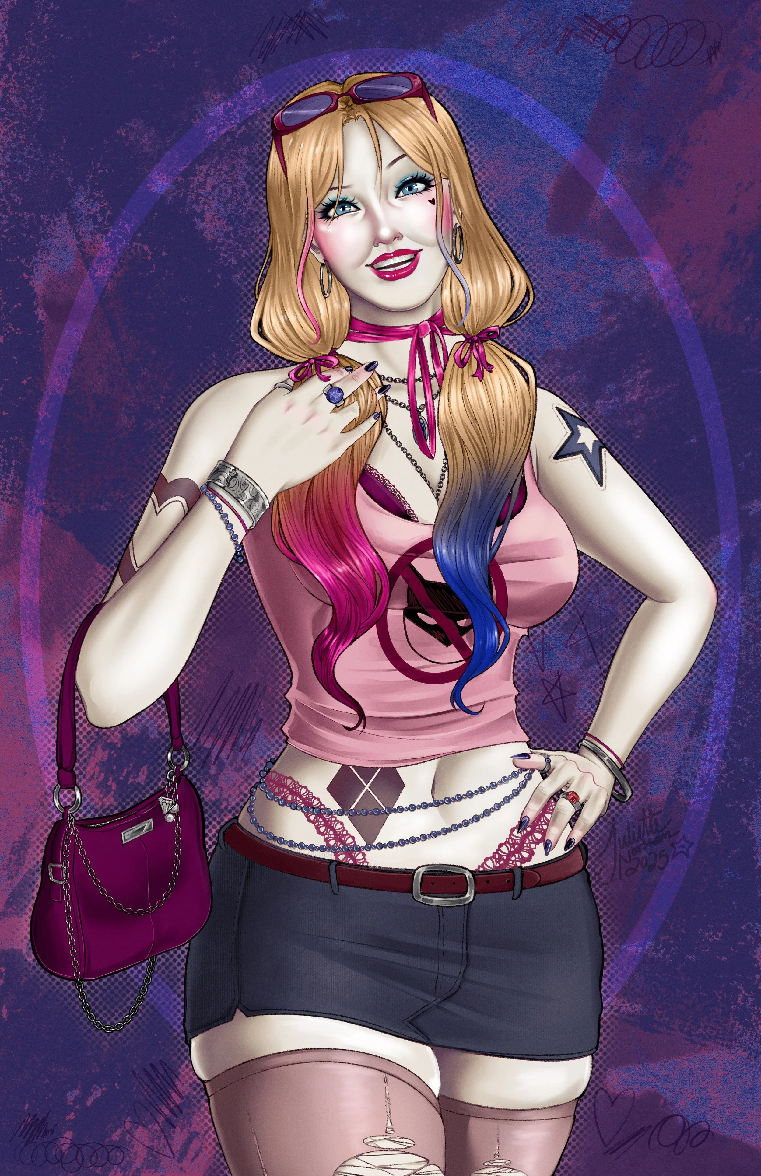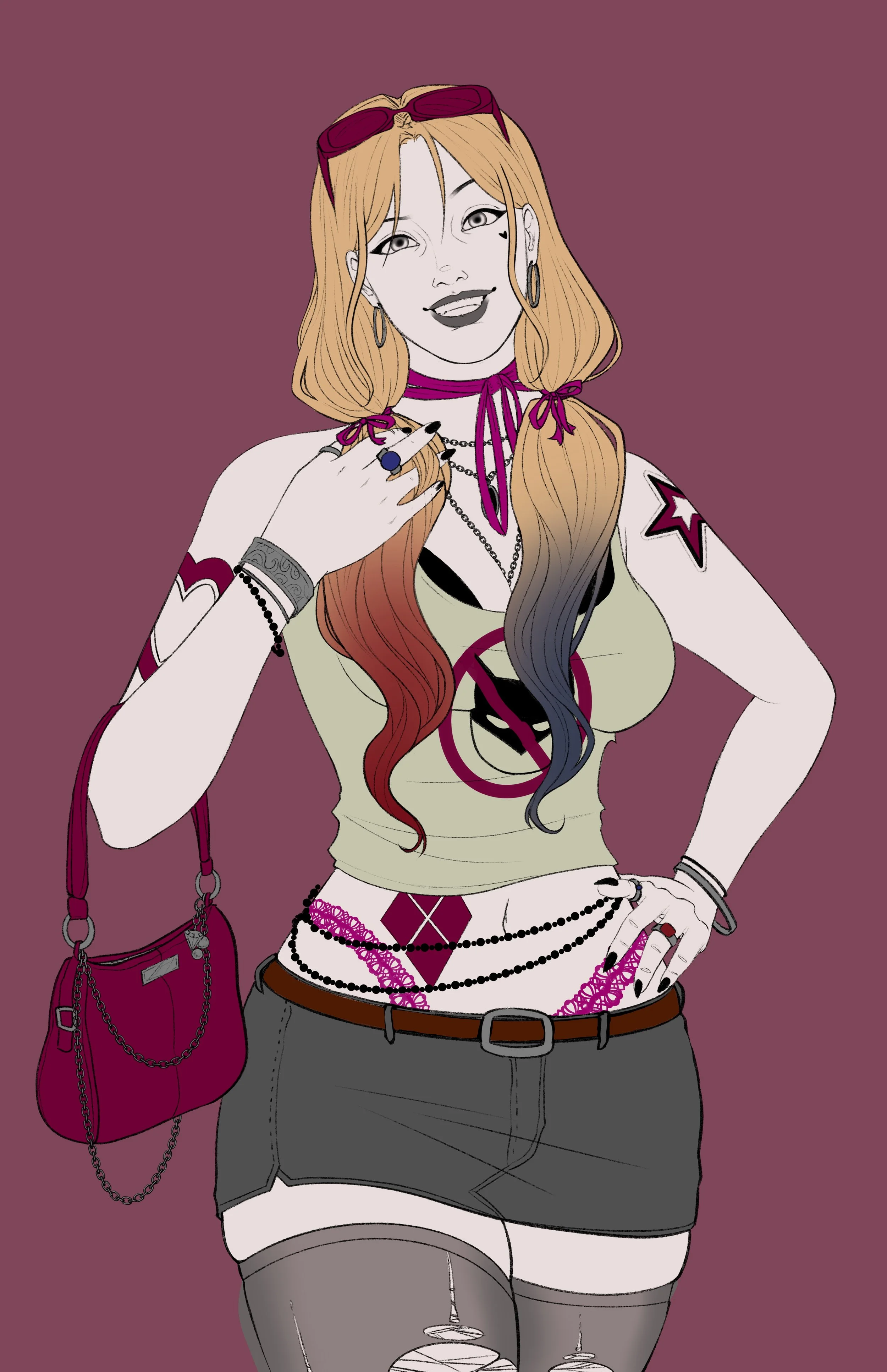 I wanted to draw a Harley Cosplay in some clothes she’d wear every other day.