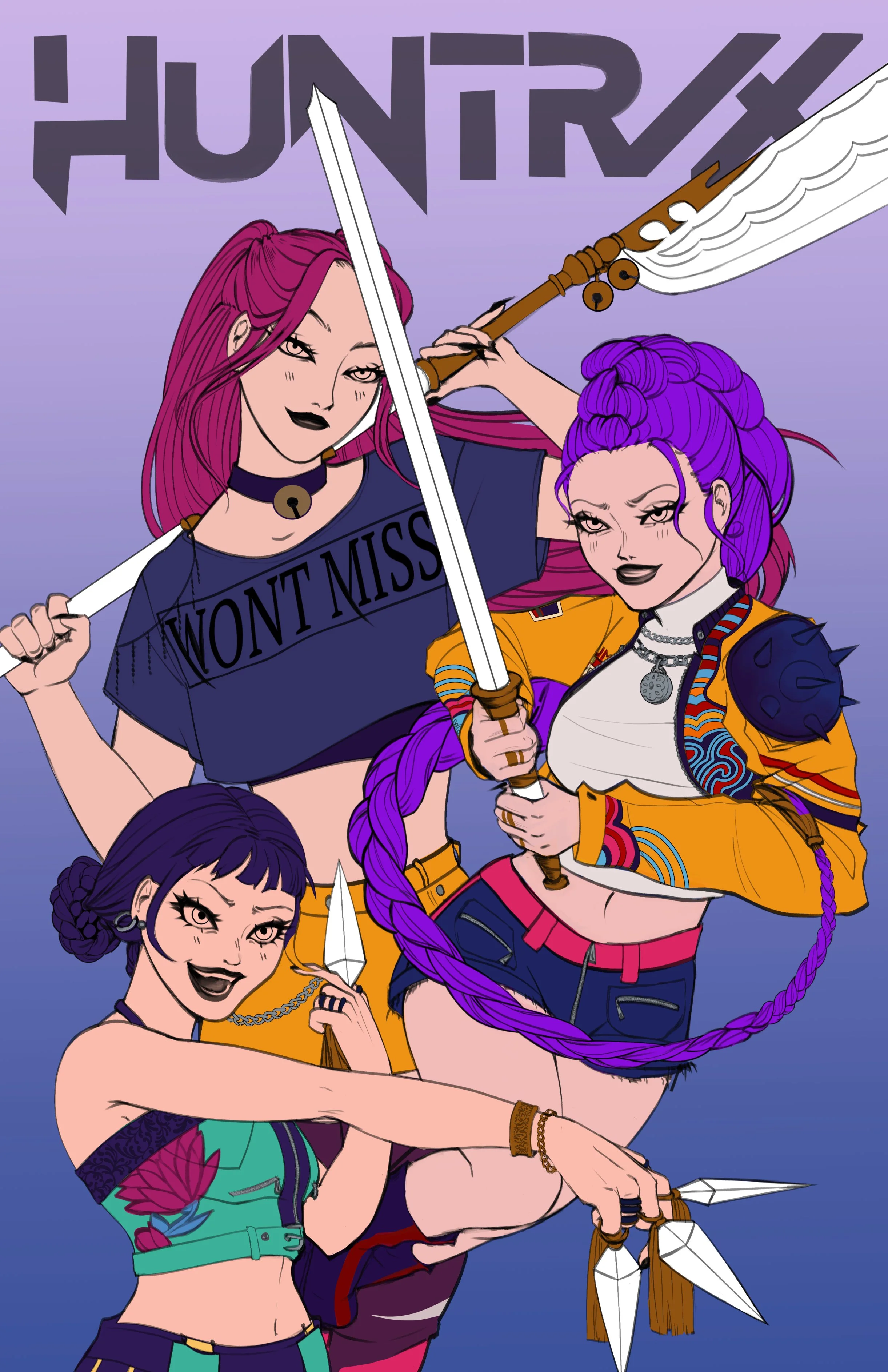 Everyone loved and loves KPOP Demon Hunters, I really did. So, I drew a cosplay of the Huntrix girls at the beginning of the movie!