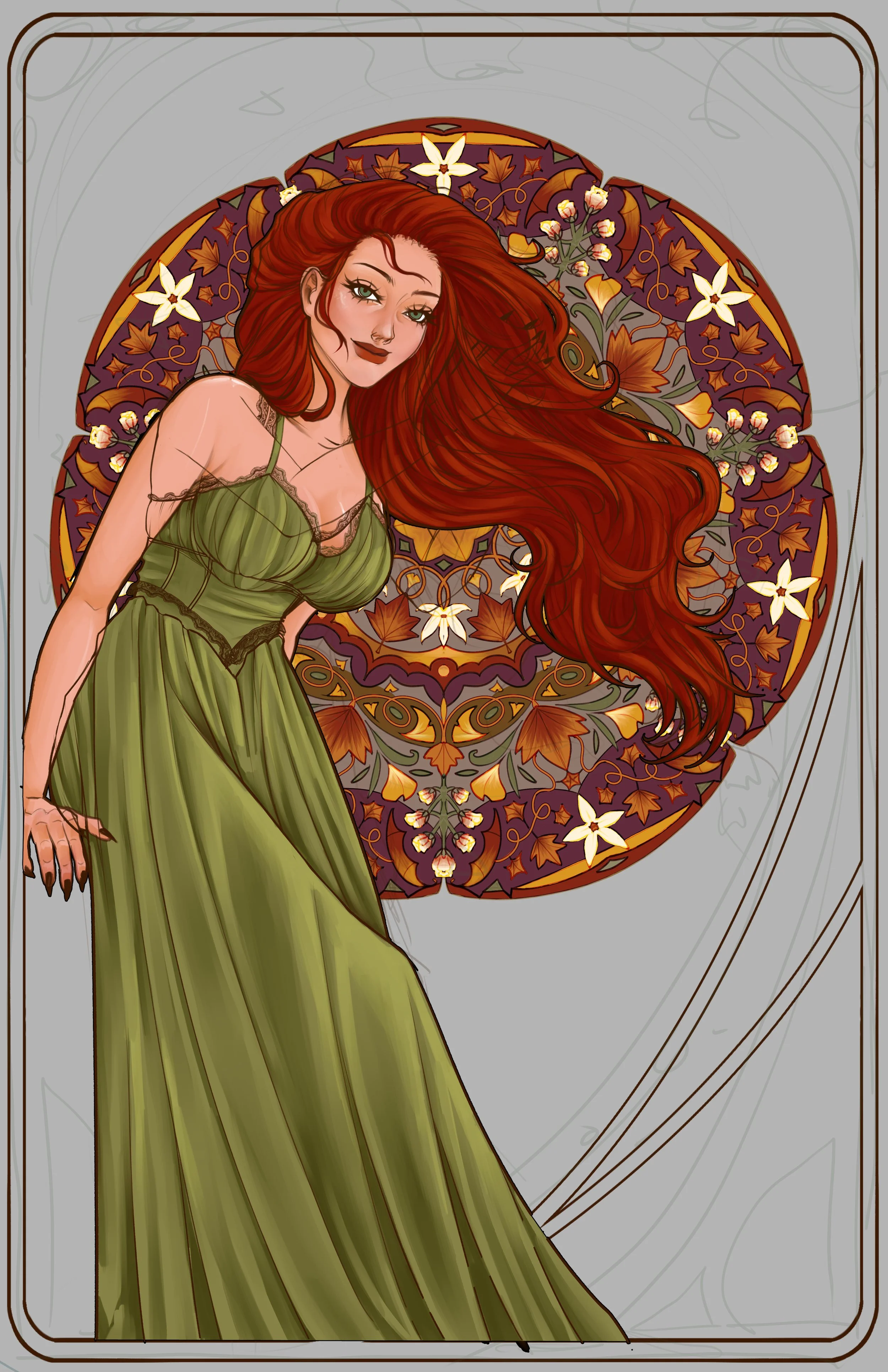 I was inspired by the Pumpkin Spicy covers that DC had been releasing so I wanted to draw my own cosplay version in an art nouveau style.